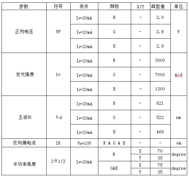 2.发光颜色:红色/绿色/蓝色