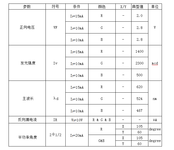 2.发光颜色:红色/绿色/蓝色